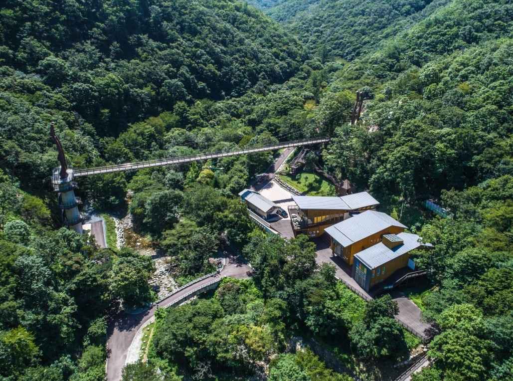 월영산 출렁다리는 금산의 아름다운 산세와 조망을 만끽할 수 있는 대표적인 스카이워크형 출렁다리입니다. 해발 약 530m에 위치한 월영산 능선을 따라 설치된 이 다리는 총길이 약 100m로, 하늘 위를 걷는 듯한 아찔한 풍경과 함께 탁 트인 전경을 자랑합니다. 봄에는 연초록의 신록이, 가을에는 형형색색의 단풍이 어우러져 사계절 모두 다른 매력을 느낄 수 있습니다. 출렁다리로 이어지는 등산로도 잘 정비되어 있어 트레킹 코스로도 매우 적합합니다.