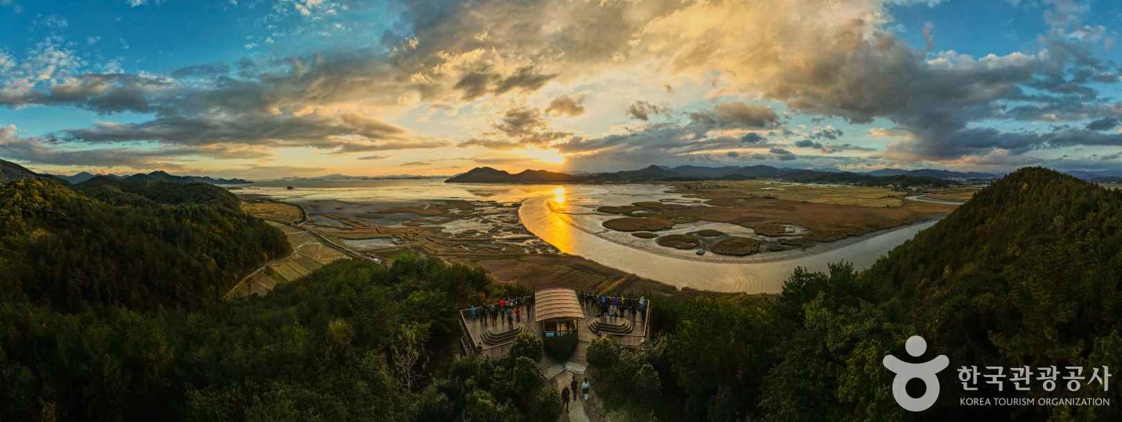 용산전망대는 순천만습지의 S자형 물길과 끝없는 갈대밭을 한눈에 내려다볼 수 있는 최고의 뷰포인트입니다. 해발 약 110m의 높이에 위치해 있어 가볍게 등산하며 힐링할 수 있으며, 특히 일몰 시간대의 붉은 노을은 많은 여행자들의 SNS에 자주 등장합니다. 정상에는 데크가 마련돼 있어 사진 촬영에 최적이며, 순천만 전체를 배경으로 인생샷을 남길 수 있는 장소로 유명합니다. 날씨가 좋은 날에는 멀리 바다까지 보여 탁 트인 풍경을 감상하기 좋습니다.