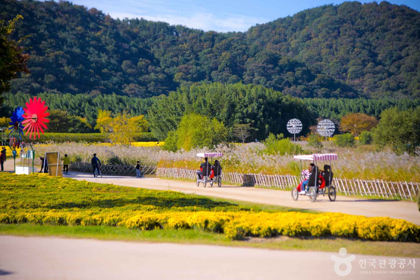 봄철에는 유채꽃과 튤립, 가을에는 핑크뮬리로 인생샷을 남기기에 최적의 장소로 손꼽힙니다. 또한 조형물과 문화체험 공간도 마련되어 있어 남녀노소 모두 즐기기에 적합합니다.