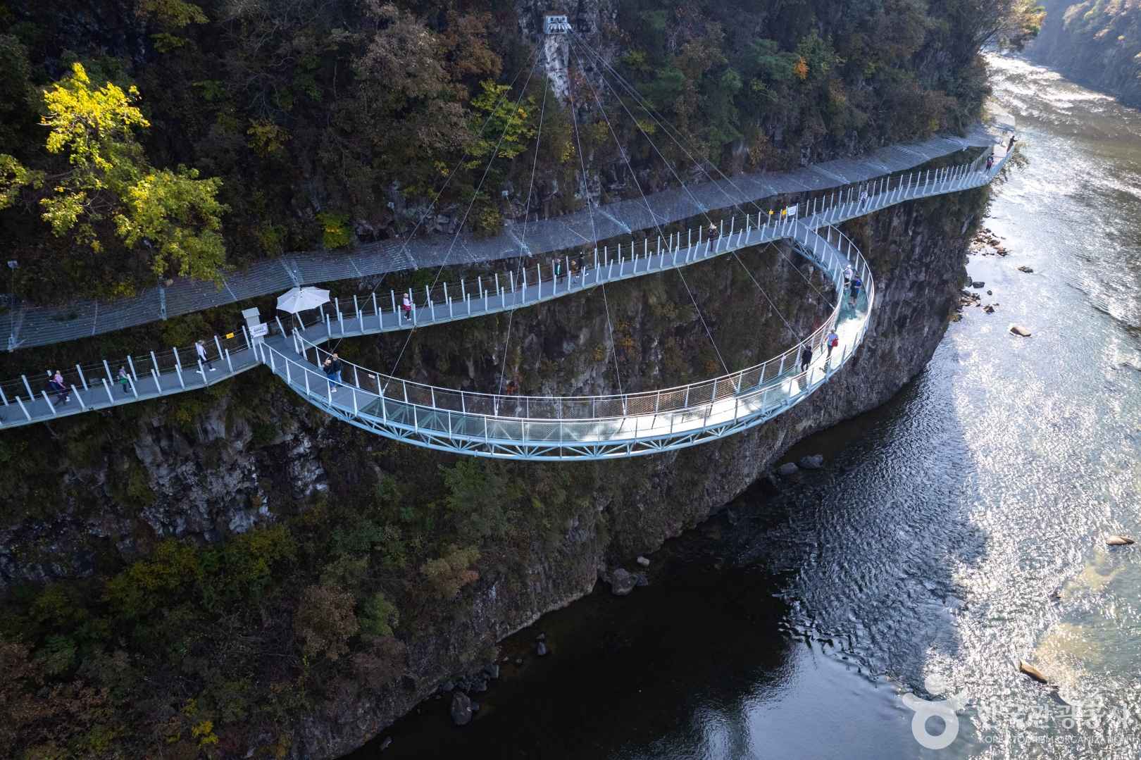 송대소는 한탄강을 따라 형성된 주상절리 절벽과 맑은 강물이 어우러진 철원의 자연 경관지입니다. 절벽 아래 펼쳐진 넓은 바위와 잔잔한 물줄기, 계절마다 변하는 주변 풍경이 어우러져 사진 명소로 사랑받고 있습니다. 비교적 조용하고 한적하여 여행의 마지막 힐링 장소로 적합합니다.