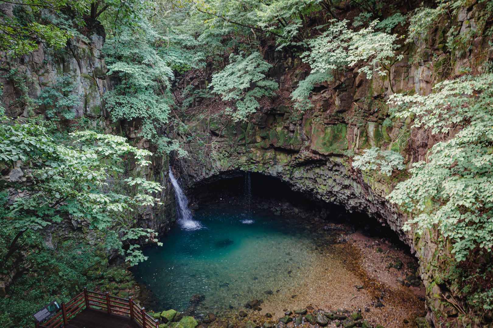 비둘기낭 폭포는 천연기념물 제537호로 지정된 주상절리 협곡 안에 자리한 폭포로, 깊고 아늑한 협곡 속에 떨어지는 물줄기가 아름다운 장관을 이룹니다. 이름 그대로 비둘기들이 서식하는 낭떠러지라는 뜻에서 유래되었으며, 폭포 주변의 주상절리 지형과 맑은 에메랄드빛 물색이 조화를 이루어 신비로운 풍경을 자아냅니다.